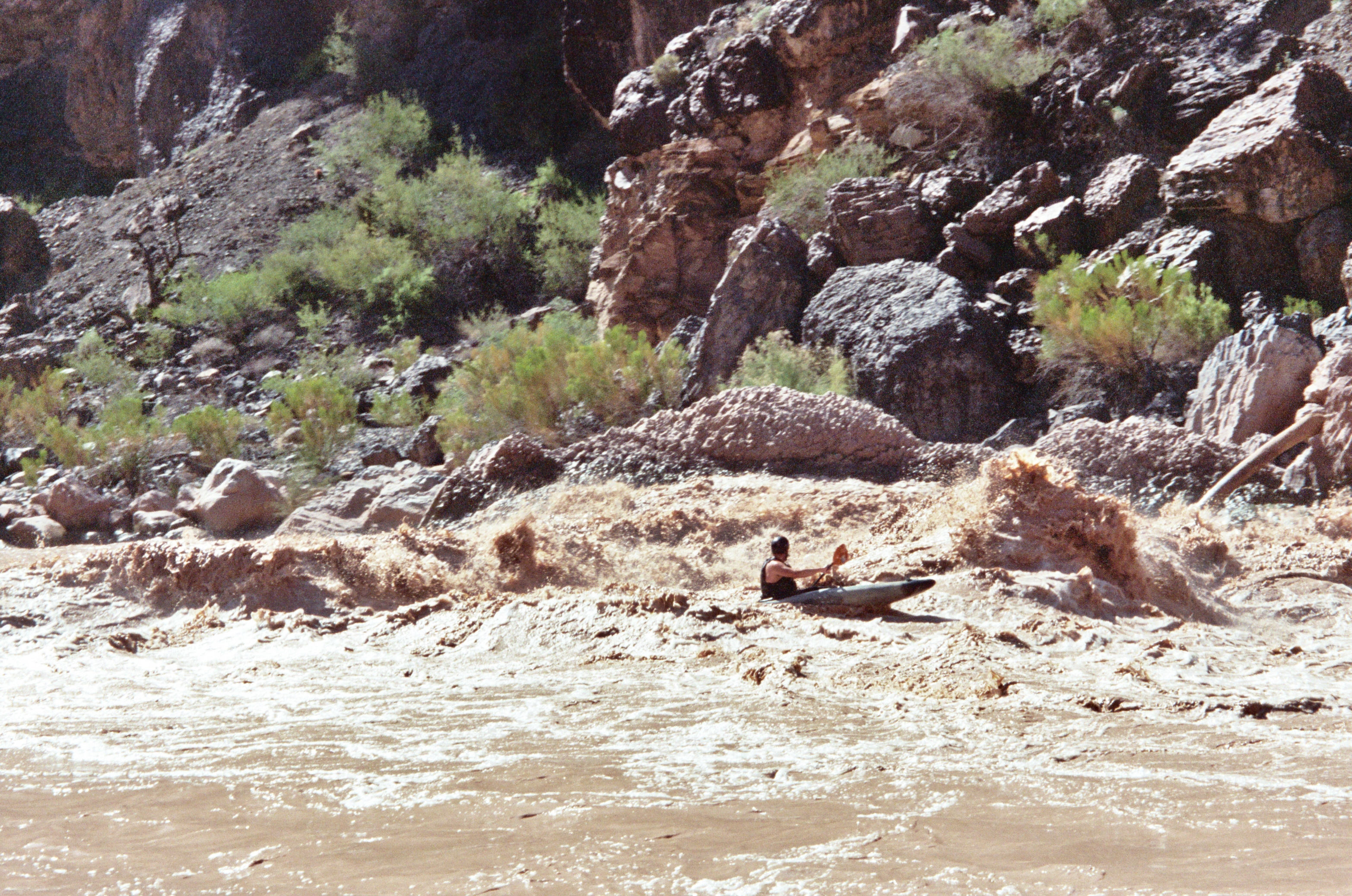 As we had with most of the other larger rapids, we pulled into an eddy and went ashore to scout the rapid. Because I was in a raft, I wasn’t concerned with the technical aspects of scouting; I just gaped at the roiling water in front of me. But our guide had done a fine job throughout the trip, so I really wasn’t too worried about his ability to navigate safely through Lava.