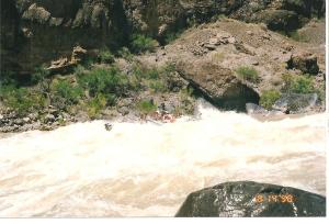 Hands down, the best vacation my family and I ever had was our trip down the Colorado River through the Grand Canyon. Everyone has seen the postcard-perfect views of the canyon from the south rim, the river a tiny green and brown ribbon snaking its way around the canyon walls far below. But in reality, the Colorado is a mighty river. Rapids formed by boulders as big as houses dot the 277 mile length of the river through the canyon. My husband and I have been kayaking and rafting down rivers since we were teenagers, and my children have been around rivers since they were born, so everyone was really excited as we got into our rafts and kayaks one hot August morning. The water was cold, about 45 degrees, but we didn’t mind. It was a fabulous trip. Rapids were scouted and run successfully. Hikes through side canyons brought us to clear, cool streams where we could splash and swim. Everything was perfect. Until we got to Lava. Lava Falls is the biggest, baddest rapid in the canyon, and we were appropriately humbled by it.