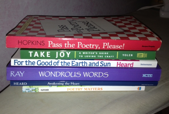 National Poetry Month is just around the corner, and although I teach and use poetry all year, I do make a fuss about all things poetical in April. This book spine poem really wrote itself as I revisited some of my favorite resources: