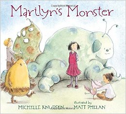 Marilyn’s Monster (Candlewick Press, 2015), by Michelle Knudsen, with illustrations by Matt Phelan is a variation on having an imaginary friend. Knudsen’s heart-felt storytelling and Phelan’s expressive illustrations work together to create a satisfying emotional journey all children will recognize.