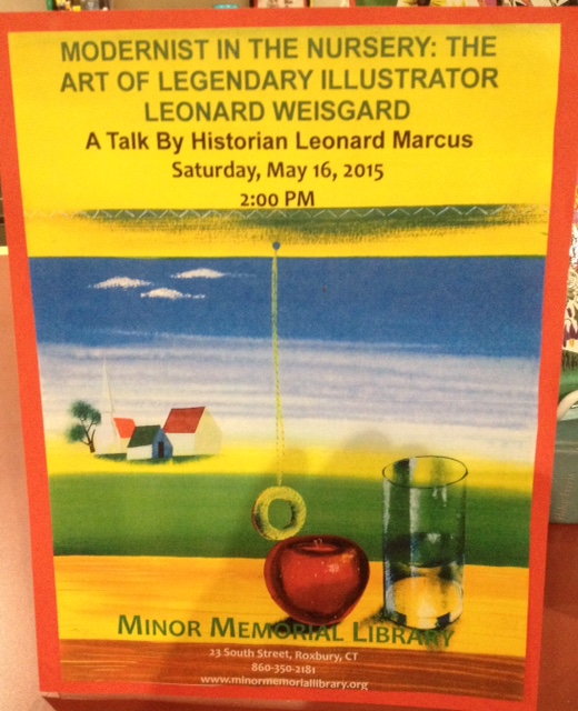 Last Saturday, neighbors, friends, and family gathered for “Modernist in the Nursery: The Art of Legendary Illustrator Leonard Weisgard, a talk by children’s literature historian Leonard Marcus. (Connecticut is still a mecca for the children’s book world; I sat next to Lane Smith!) Marcus talked about Weisgard’s love of color and nature. He discussed Weisgard’s many collaborations with Margaret Wise Brown and how her work at the Bank Street Writers Laboratory influenced his art. Weisgard loved folk art, and Marcus shared several examples of how that love influenced his art.