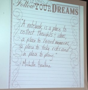 Eric Hand began his session “Making Notebooks Live Everyday in Writing Workshop,” at Teachers College Saturday Reunion last weekend by sharing this quote from friend and fellow slicer, Michelle Haseltine: