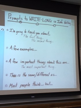When revising informational pieces, Eric suggested using the notebook as a place to sketch layout options. He also noted that students can try different types of text features in their notebooks. This will help them be more purposeful with their use of text features. “Effective use of text features is a craft move,” Eric reminded us.