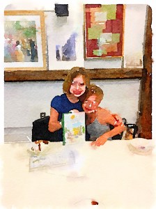 We met twice during the summer to celebrate these books and our reading. Taking a cue from poetry promoter extraordinaire, Sylvia Vardell, Gone Fishing readers made poem collages (scroll to the bottom of the post) for their favorite poems, then performed some of the poems for two (or three) voices. At our second get-together, the kids wrote acrostics and list poems about fishing or other favorite hobbies. The highlight of this evening was a Skype visit with Tamera. She shared that the idea for Gone Fishing grew out of one poem based on Tamera’s memories of going fishing with her family. Some brave poets then read their poems. Everyone was inspired to write more poems, and one lucky girl went home with a copy of Gone Camping, Tamera’s new book about Sam and Lucy.