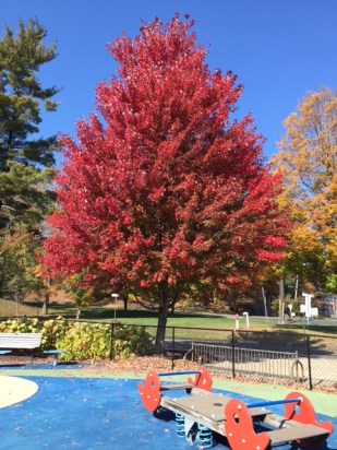 Each day as I come and go to my classroom, I pass a wall of windows that looks out over the playground. At the far end is a maple tree whose leaves turn the most gorgeous red I’ve ever seen. I’ve always felt a kinship with that tree, that I was the only one who appreciated its beauty. Yesterday, two teachers were standing by the windows deep in conversation about a student. They paused and said hello as I walked by. With Mary Oliver’s words in my mind, after returning their greeting, I pointed out the flaming red leaves of the tree. One of the teachers hadn’t ever noticed the tree’s beauty and thanked me for pointing it out to her.
