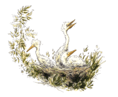 Margaret’s poems introduce us to the many plants and animals who make their home in the bayou. Nutria, with their “bright orange tusks” were unfamiliar to me. Other inhabitants were familiar, but Margaret’s vivid images helped me see them in a new light. I will never think of crawfish again without thinking of their “round peppercorn peepers.” And of course baby egrets are “feather-glistening,” “worm-juggling,” and “nest snuggling.”