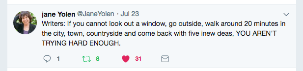This tweet from Jane Yolen last week instantly provided a modeling strategy for three of the sixteen habits of mind: