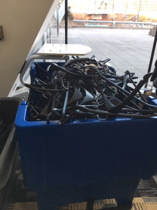 During the same session, Ralph Fletcher shared that “photography uncovers surprises” and that we should “follow where they lead.” As I was writing this poem, I was surprised to learn that a wedge is in fact a collective noun for swans. So even though these hangers aren’t exactly wedge-shaped, I think wedge is the perfect word to describe a group of hangers.
