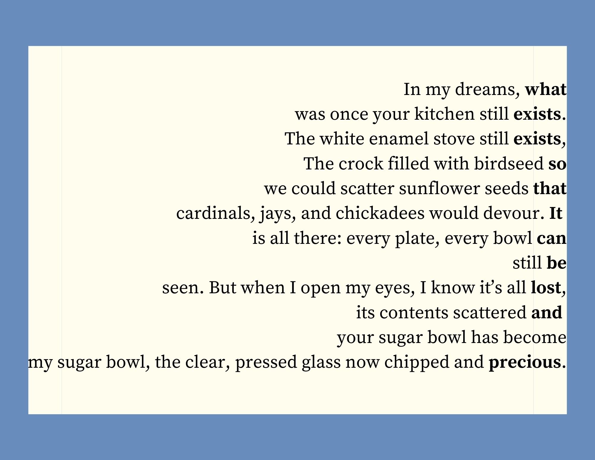 I come from a long line of quilters. Once upon a time, I had grand ambitions of creating my own quilts. Now I write poems instead. (The similarities between the two arts are not lost on me; maybe I’ll write about that one day.) Here is the poem that emerged from this jumble of thoughts.