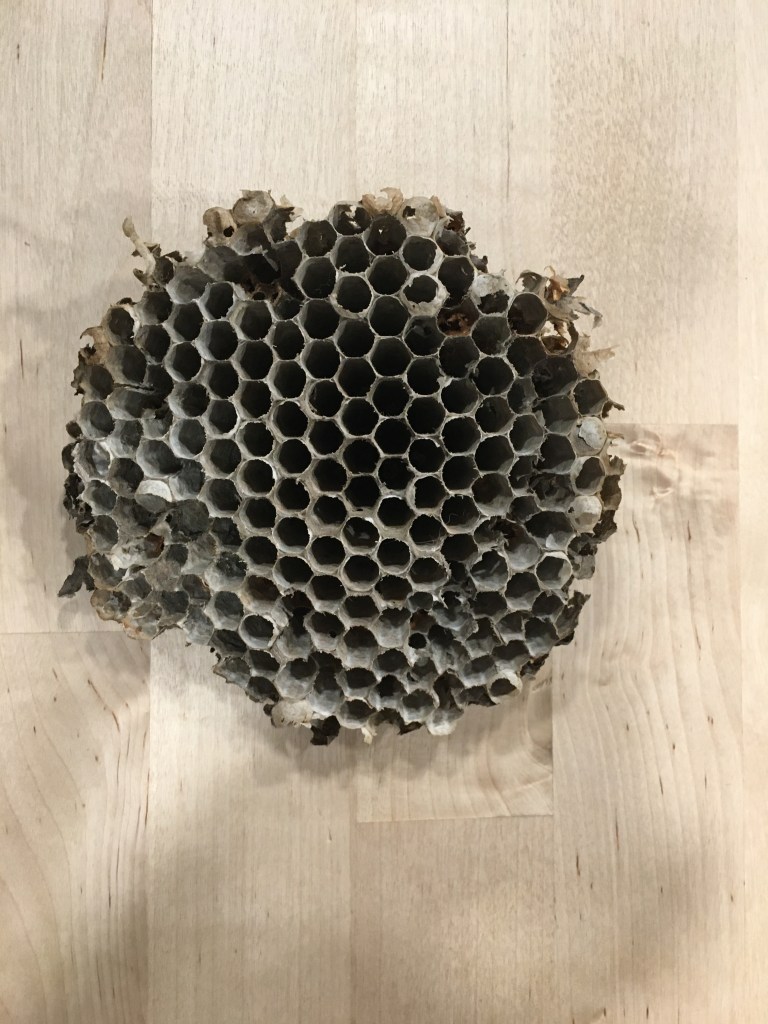 That narrows it right down, doesn’t it? Coincidentally, sitting on my desk is a layer from a wasp nest that fell from a tree during a recent storm.