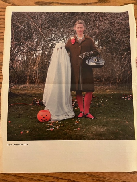 Last night, as I was sorting through a box of old photos, I found one of me and Mother in the garden one long ago Halloween night. I think I was eight or nine. A white sheet with two holes cut out (unevenly; or maybe it’s my head that’s lopsided) for eyes is draped over me. A plastic jack-o-lantern rests at my feet, ready to be filled with treats. Mother had made a slit on each side so I could carry my cache of candy. I remember tripping on the extra inches of fabric pooling around my feet as we paraded around the neighborhood.