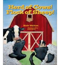 Finally, silliness ensues in Rick Walton’s Herd of Cows! Flock of Sheep! (Gibbs Smith, 2002, 2011; illustrated by Julie Olson). This book incorporates the collective nouns into the story of how Farmer Bob’s animals jump into action to save him after his bed is swept away in a flood.